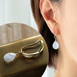 6月の誕生石・ホワイトムーンストーンをイヤーカフにしました。 満ち足りたようなコクのある白が、奥行きを感じさせます。 ぷるんと、もっちりとして見える質感が愛らしく、大粒のドロップカットで重量もあるので...