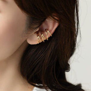 クロスデザイン:2連構造のイヤーカフと交差するループが新奇でユニークな三角形構造を形成し、日常的な装着に安定感があり、落ちる心配がありません 使い方が簡単:耳たぶや軟骨部分にそっと埋め込み、固定すれば手を緩めることができ...