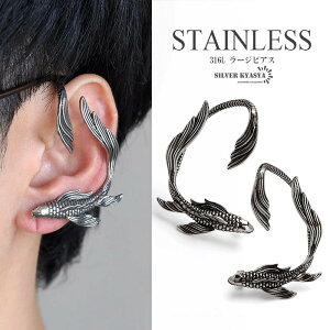 詳細 商品概要 ■ITEM DETAIL "鯉"をモチーフにした大胆なデザインが目を引くラージピアス。燻し風のブラック加工が映えるアイテム。右耳用と左耳用の2タイプ展開。 ■316Lサージカルステンレス素材を使用 金属部分は医療用とし...