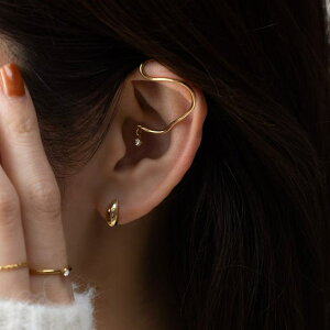 耳の外側の軟骨部分に着用するヘリックスイヤーカフ。ナチュラルなうねりのあるメタルと煌めき揺れる一粒ビジューが品良く身につけられます。単品使いはもちろん、お手持ちのカフやピアスと重ねて色々な表情が楽しめます...