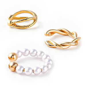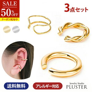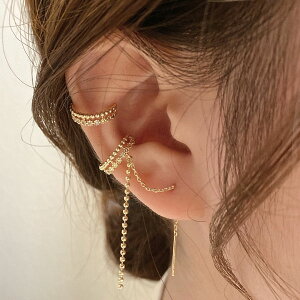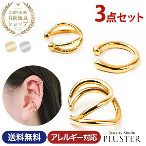 シンプルなデザインで合わせやすいイヤーカフ。【重ね付け3点セット】耳に引っ掛けるタイプのイヤーカフは、ピアスやイヤリングとはまた違った、新しい着け感が目を惹くアイテム。ピアスホールがない方にも着用していただけます...