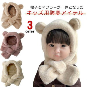 【ふわふわ】【3つの役割】くまの耳がついている帽子と一体型の赤ちゃん用マフラーふわふわで暖かいのでベビーの防寒対策にピッタリ冬の外遊びにぴったりです。3つの役割をカバー、頭・首・肩をしっかりあたたかく保護します。らくら