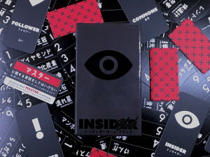 ・4〜8人 OIN09023・クイズと正体探し、ふたつの楽しさが絶妙にマッチした、短時間でみんなが盛り上がれる会話ゲーム。・会話で進めていくクイズの中、陰で議論を思い通りに操作している狡猾なインサイダーが紛れこんでいます。・インサ