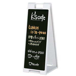 スリム&スタイリッシュなA型ボード。上部に持ち手用の穴付きで手軽に設置・移動・収納が可能。板面がマットタイプで反射しにくく、見やすさ抜群です!サイズ:[外寸]W450×D530×H1000mm、[面板]W450×H920mm材質:MD...