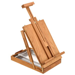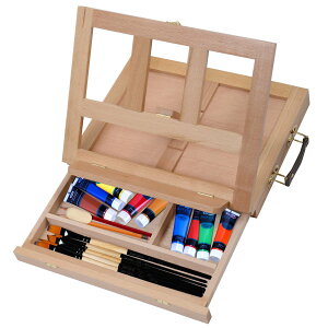 【気軽に絵が描ける卓上イーゼル】卓上に置いて使いやすい小型タイプのイーゼルです。絵の具・画材が収納可能な引き出しとパレットが付属します。【角度調節】角度を、完全に閉じた0度から段階に調節が可能。お好みの角度で描画するこ