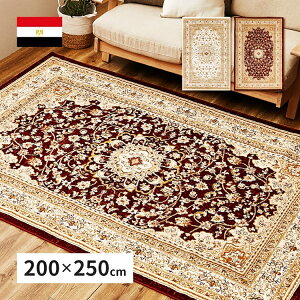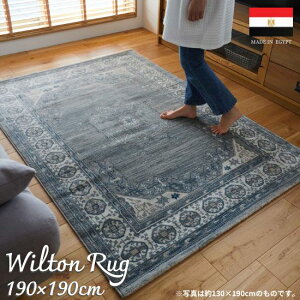 エジプト製のウィルトンラグ。オリエンタルな模様とシックな色合いの高級感のあるデザインは、インテリアのアクセントにぴったり。また、ウィルトンラグはパイルの密度が高く耐久性に優れ、お気に入りのラグを長く使いたい方にもおす