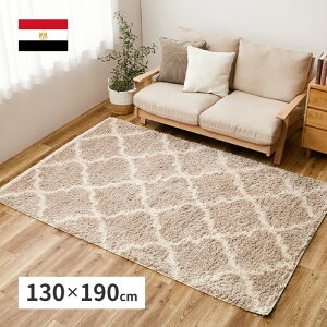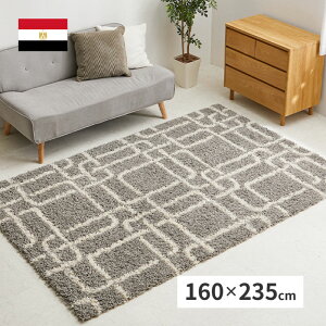 エジプト製のウィルトン織シャギーラグ。おしゃれなモダン柄とナチュラルなカラーでどんなインテリアにも合わせやすいデザインです。毛足が長くボリュームがあり、おもわず寝転びたくなるような心地良さの、ふわふわとやわらかな肌触