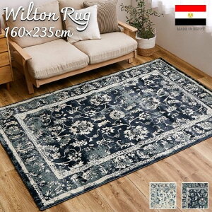 エジプト製のウィルトンラグ。オリエンタルな模様とシックな色合いの高級感のあるデザインは、インテリアのアクセントにぴったり。また、ウィルトンラグはパイルの密度が高く耐久性に優れ、お気に入りのラグを長く使いたい方にもおす