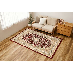 クラシック調のデザインがインテリアのアクセントに。高級感のある繊細な模様を丁寧に織り上げたウィルトンラグ。ウィルトン織りは表面のパイル糸を下糸に直接絡み合わせて織り込んでいる為、耐久性に優れた仕上がりに。また、ヒート