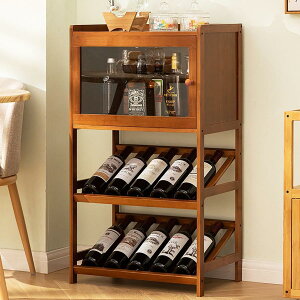 竹製酒 棚 収納コンパートメント付き お酒 棚 ボトルラック ワイ