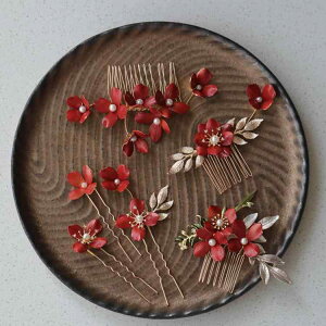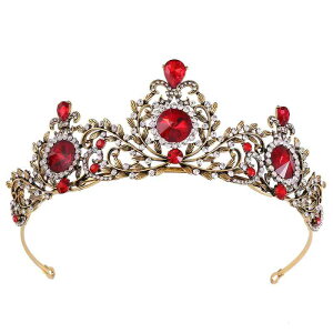 ・カテゴリ: ヘアアクセサリー・素材: 合金・スタイル: 欧米風・対象: 女性用・モチーフ: リーフ・加工: ラインストーン装飾・使用石: レッドクリスタル・カラー: アンティークゴールド、レッド