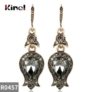 商品名ファッション グレー クリスタル 花 フラワー 大 ピアス レディース ボヘミア アンティーク ゴールド ビンテージ 結婚式 ウェディング トル