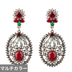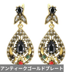 商品名BOHO 大 クリスタル 花 フラワー ピアス レディース アンティーク ゴールド カラー 黒 ブラック ストーン エスニック 結婚式 ウェディング ジ