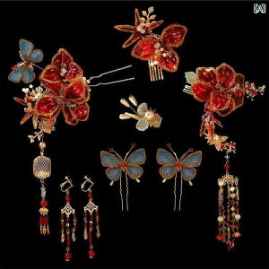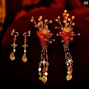 2個セット・カテゴリ: ヘアアクセサリー・対象: 女性用・スタイル: 中国風・スタイル分類: 文芸レトロ・素材: 混合素材・柄: 植物花卉・カラー: レッド・加工方法: 手作り・ヘアクリップ分類: ペアクリップ
