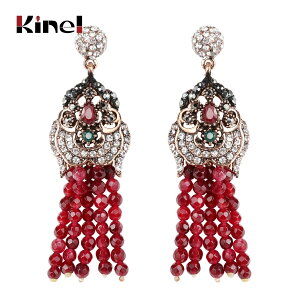 予めご了承くださいませ。商品名赤 レッド ナチュラル ストーン タッセル ピアス レディース エスニック スタイル アンティーク ゴールド クリスタル ブライダル ビンテー