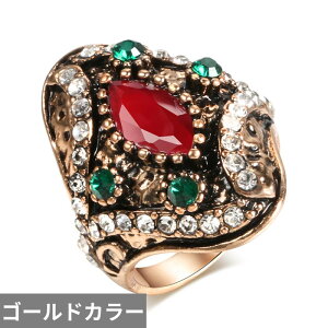 商品名ビンテージ 赤 レッド ストーン リング 指輪 ファッション アンティーク ゴールド カラー BOHO クリスタル レディース 結婚式 ウェディング