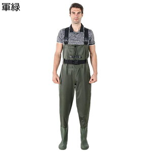 【チェストハイウェーダー】【胴付長靴】【防水性】釣りや川遊び、洗車に田植え、いろいろな水作業の強い味方です。フラット是部分にポケットがあり、簡単なものが入れられます。柔らかなPVC素材を使用して、高い耐水性のほか...