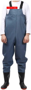 表地:PVCメイン素材:PVC【完全防水ウェーダー】水中に入っても濡れないように施されており、おもに釣り人が着用し、川や湖、海や河口で水中に入り込む場合によく用いられます。陸からでは届かないポイントにも水に立ち込むことで攻め