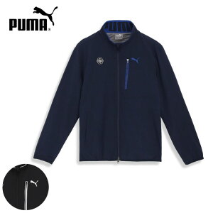スマートなシルエットが魅力のフルジップブルゾン。ストレッチ性のある素材を使用しているので体に優しくフィットし、快適なゴルフプレーをサポートします。フロントのプーマキャットとブランドロゴに加え、バックにはプーマワードマ