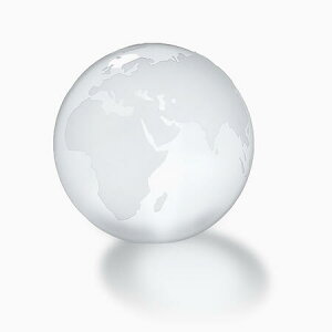 球体の光学ガラスに、砂などの研磨材を吹き付ける『サンドブラスト』という加工法で大陸の柄を描いた、地球型ペーパーウエイト。 透き通ったガラスが鮮やかで、お部屋に置いておくだけでもインテリアとして使えそうです。 ずっしりと