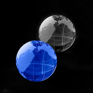 球体の光学ガラスに、砂などの研磨材を吹き付ける「サンドブラスト加工」で大陸の柄を描いた、地球型ペーパーウエイトです。 透き通ったガラスが鮮やかで、お部屋に置いておくだけでもインテリアとして使えそうなペーパ