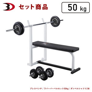 「プレスベンチ」は場所を選ばない省スペース設計。安定感、耐久性にも優れ、自宅でジム同様のトレーニングが行えます。 「ラバーバーベルセット」は防音性にも優れたラバータイプです。