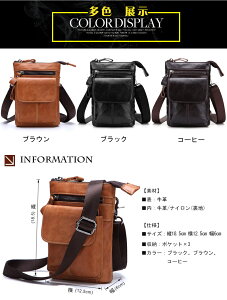商品内容 ★素材:本革/表革 ★上質な本革のぬくもりを感じる事ができて、持つだけでワンランク上げ雰囲気が漂う。 ★長持ちの金属製パーツを採用、ショルダー調節可能、使い勝手の良い鞄です。 ★ポケットの数が充実で、収納するもの