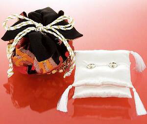 巾着とリングピローがセットになった新しいタイプの和調リングピロー。 ピローは巾着にぴったりと収まります。挙式での演出として巾着からピローを取り出しても、巾着の中にピローを入れたままでもご使用になれます。 式の後にリング