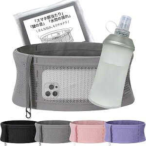 【4分割独立ポケット・2025新登場】 ランニングポーチ ウエストポーチ ランニング スマホ ジョギング ポーチ 揺れない ランニングベルト ウォーキング 超軽量コンパクト 洗濯丸洗いOK (グレー(水筒付き),...