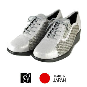 ◆メッシュ素材を組み合わせた、クッション性の良い日本製モデルが新登場! ◆内側ファスナー付きで、脱ぎ履きがカンタン。◆幅広な4Eサイズです。