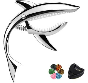 ド】ギター カポタスト ワンタッチ カポタスト シャーク 鮫形 ギター カポ アコギカポ エレキギター カポタスト フォークギターウクレレ用 高級亜鉛合金 (シルバー)カポタスト は高品質の
