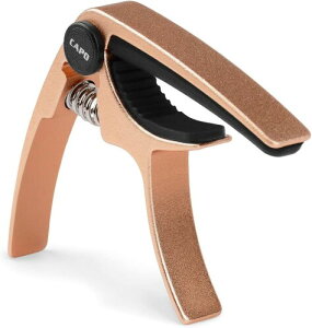 片手でネックを挟むだけ!最も簡単に、素早く装着できるカポタスト。エレキギター、アコースティックギター、クラシックギターに使えます。ビビる事なく開放弦のクリアな音をお楽しみ頂けます。バネ式の特徴は、挟むだけで移調が行え