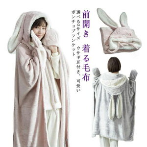 選べる2サイズ ウサギ耳付き、可愛いポンチョブランケット毛布のような厚手のフランネル生地を使用しています。着心地が良く、ふわもこした柔らかな質感は、優しくてとても快適です。保温性も高いので、寒くなり始めた秋...