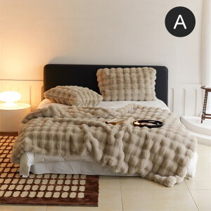 【模造ウサギのぬいぐるみ生地】ブランケットは高品質のイミテーションラビットファー素材を使用しており、本物のラビットファーを撫でているような心地よさがあり、両面にプラッシュ加工が施されており、高密度に植毛されているため...
