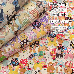 花柄やチェックのお洋服を着たうさぎたち。うさ耳を付けたネコもいますね。 バッグやエプロン、カバーリングなどにおすすめです。 ●この生地は商用利用可能です。 素材:綿100%オックス/規格:約110cm巾/柄送り:...