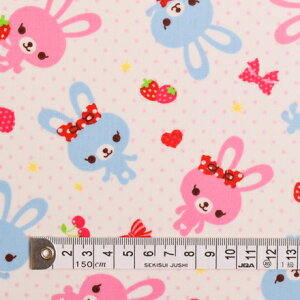 テーブルクロスに最適な生地 生地 女の子 子供 いちご イチゴ うさぎ ウサギ 新学期 春 可愛い かわいい 柄 模様 総柄 プリント生地 生地 布 エステルスラブ 和風生地 セール アウトレット...