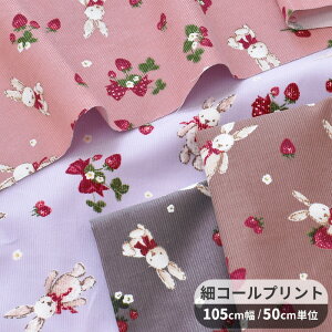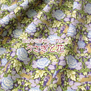 可愛らしいウサギとフラワーモチーフのプリント生地。 上品でエレガントな雰囲気のボタニカル柄です。 左右対称のシンメトリーで小さなウサギさんが向かい合っている姿が素敵ですね♪ 素材は綿100%のブロード...