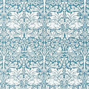 MO-3945 ウィリアム・モリス 兄弟うさぎ ライト・ブルー この柄もモリスを代表する柄ですね。ウサギとハトと植物を対称的に整然と配置しています。繰り返しのリズムが美しさを感じさせます。 ベスト・オブ...