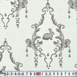 MO-3721 紋章の中のウサギ ライトグレー/クリーム コットンプリント生地 図案化した紋章の中にウサギの横向きのシルエットを描いています。無駄な線が無く洗練されています。クッションカバーや風呂敷バッグなどに...