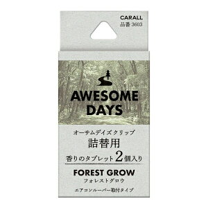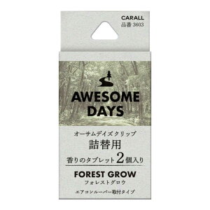 ●オーサムデイズ クリップ専用の詰替用エアコンルーバー取付タイプのオータムデイズクリップの詰替え用フォレストグロウ青々とした若葉が生い茂る森の中で深呼吸をした時の森林の香り ■容量:2.4g×2個■品番:3603■本体寸法:W18×H...