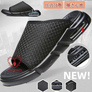 サンダル スリッパ ビーチサンダル メンズシューズ エア付き軽量 滑り止め 履き心地良い 夏用靴メンズ サボサンダル メッシュ生地素材;アッパメッシュ生地 ソールPU生地+エア Colorブラック サ...