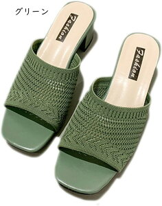 サンダル レディース ミュール チャンキーヒール スクエアトゥ 7