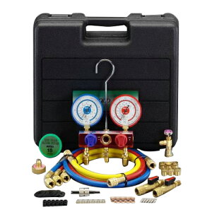 正確な圧力測定値と冷媒処理用に設計されたプロフェッショナルなHVACゲージセット - このオールインワンマニホールドゲージキットには、精密ダイヤル、高圧ホース、ユニバーサルフィッティングが含まれているため、R134A、R22、R410...