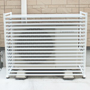 外機が高温になるのを防ぎ、冬は雪による排気ファンの目詰まりや室外機の冷え過ぎ防止になりますエアコン室外機カバーでは、網も付いてあり、飛散した葉やゴミが室外機の中に入