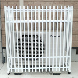 室外機を直射日光や風雨から守る組立てて室外機に被せるだけの簡単設置! 雨・風・直写日光から室外機を守り、節電を促します。 斜めに設計した前面のルーバーが、直射日光を通しつつ風はしっかりと通します。 錆に強いアルミ製で、屋外