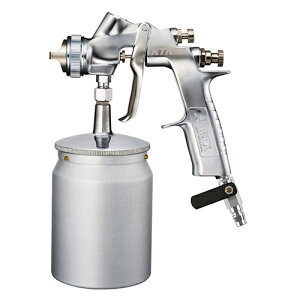 吸上式のエアスプレーガンです。[用途]一般塗装用スプレーガン。[機能]ラッカー塗装の仕上げに最適です。容量たっぷり仕上り綺麗です。[仕様]●塗料供給方式:吸上式。●塗料ノズル口径:1.5mm。●空気圧仕様:通常圧:0.3MPa...