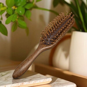 ・カテゴリ: 木櫛、ヘアブラシ、クッションブラシ、ヘルスケアブラシ、実用ブラシ・素材: 檀木・カラー: 金糸檀・サイズ: 21×6.5cm・対象: 一般的な方
