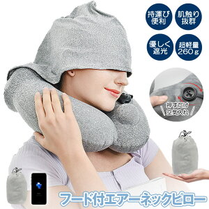 【送料無料】ネックピロー H型 フード付き ベージュ コットン 首枕 携帯枕 エアーピロー ポンプ式膨らませる 収納ポーチ付き 洗えるカバー トラベル 旅行用 飛行機 自宅 高速バス 新幹線 オフィス...