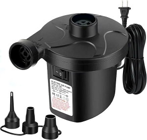 プールやボートも一気に膨らむAC電源式エアーポンプ。 空気の注入・排出どちらも可能な電動エアーポンプ。 三種類のノズルも付属しています。 別売りのファミリープール(約)200×148cmタイプなら(約...