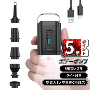 できます。 コンセントに接続せず、事前の充電によりコードレスで使用することができます。 多用途電動エアーポンプ、5種類の付け替え